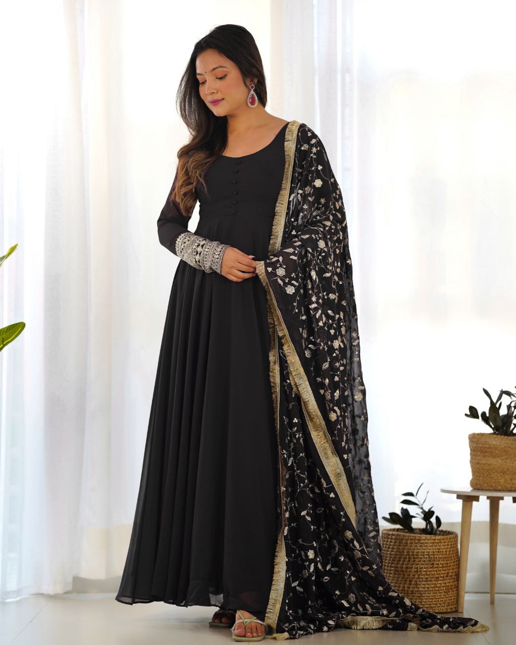 Gown Fabric: Heavy Pure Soft Faux Georgette 7 Mtr Plus Flair