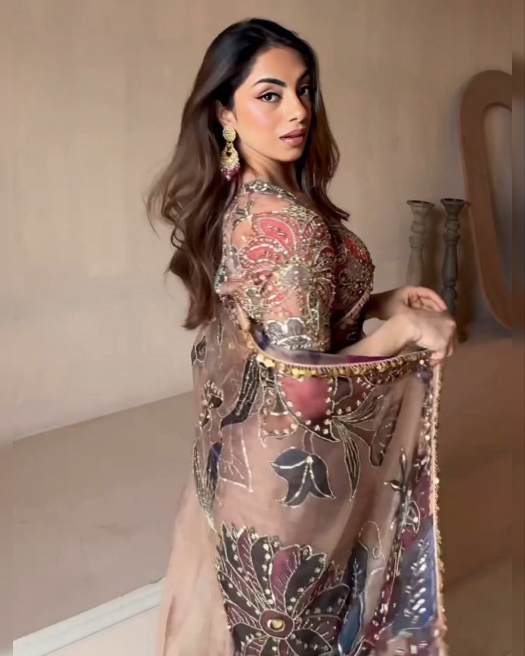 Work: Zari Embroidery Thread With Sequence Work, Real Mirror Work And Hand Work